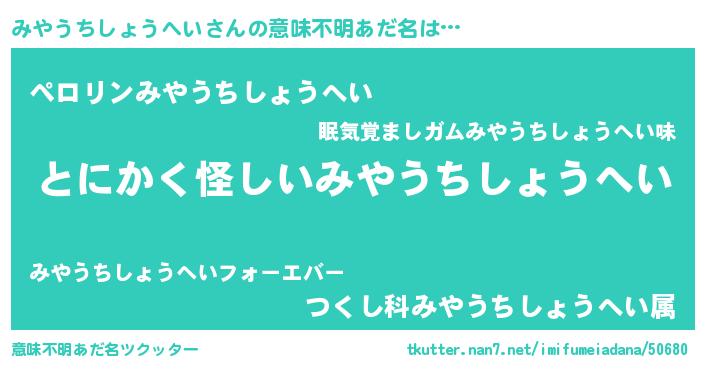| ポケモン風あだ名 | 『ヒミヤウチショウヘイ』『ミヤチュウ』 |