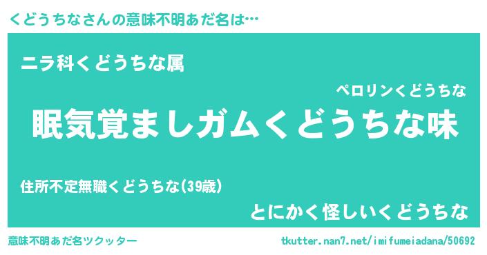 | ヒーロー風カッコイイあだ名 | 『天空の使者くどうちな』『炎刃騎士クド』 |