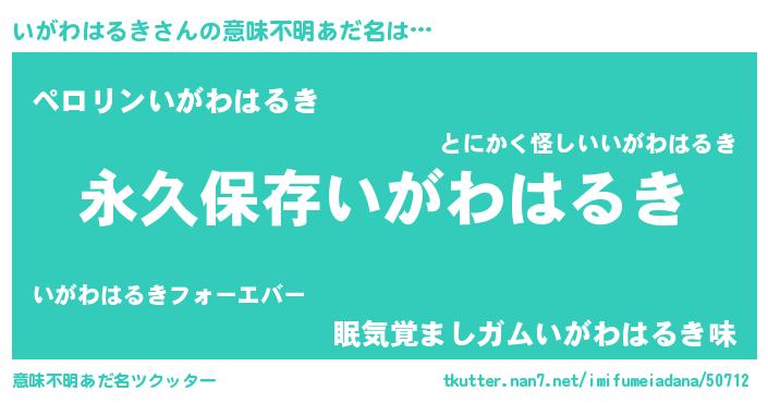 | ヘコむあだ名 | 『いがわはるき(遠い目)』『いがにー』 |