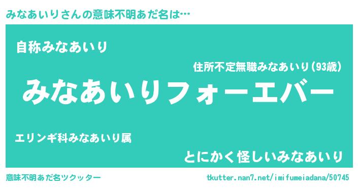 | 欧米人風あだ名 | 『みなあいり・ステッグマイヤー』 |