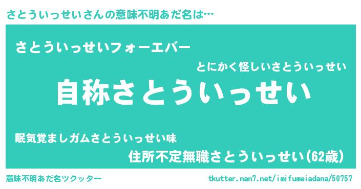 | 女子向けラノベタイトル風あだ名 | 『さとういっせいアンティーク』 |
