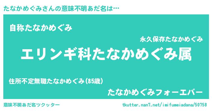 | 肩書あだ名 | 『たなかめぐみ大将』『たなかめぐみ総統』 |