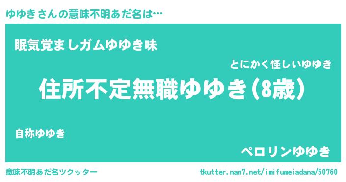 | 女子向けラノベタイトル風あだ名 | 『乙女ゲームの破滅フラグしかない悪役ゆゆきに転生してしまった…』 |