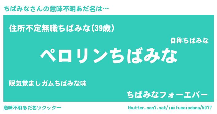 | 男性向けラノベタイトル風あだ名 | 『ちばみなに滅ぼされるだけの簡単なお仕事です』 |