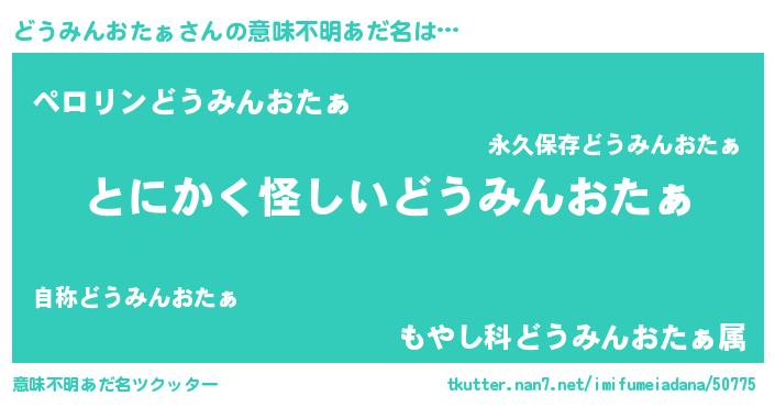 | ポケモン風あだ名 | 『ドウゴンZ』『ヒドウミンオタァ』 |