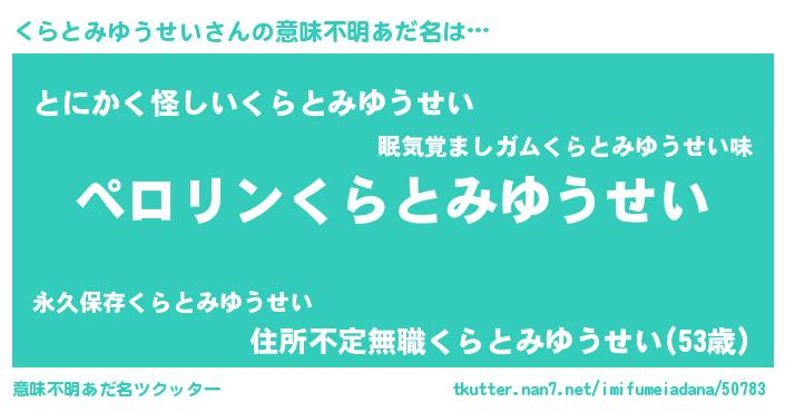 | 胡散臭い通販商品みたいなあだ名 | 『モテモテ間違いなし霊験あらたかなお札…その名も「くらとみゆうせい」』 |