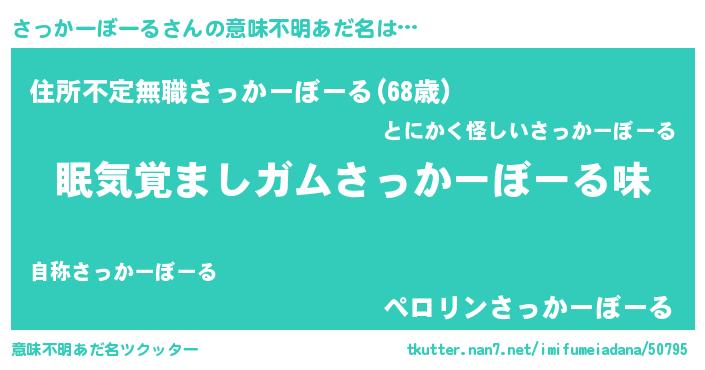 | 女子向けラノベタイトル風あだ名 | 『さっかーぼーる恋絵巻』 |