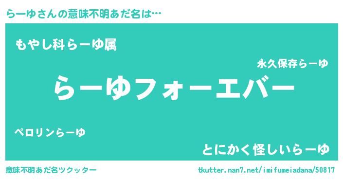 | 肩書あだ名 | 『らーゆ総理大臣』『らーゆ中尉』 |