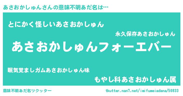| ファンタジー風あだ名 | 『エターナルアサオカシュンー』 |