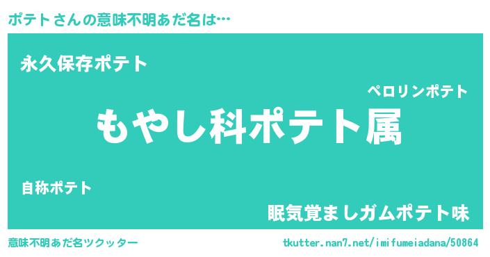 | 男性向けラノベタイトル風あだ名 | 『転生したらポテトだった件』 |