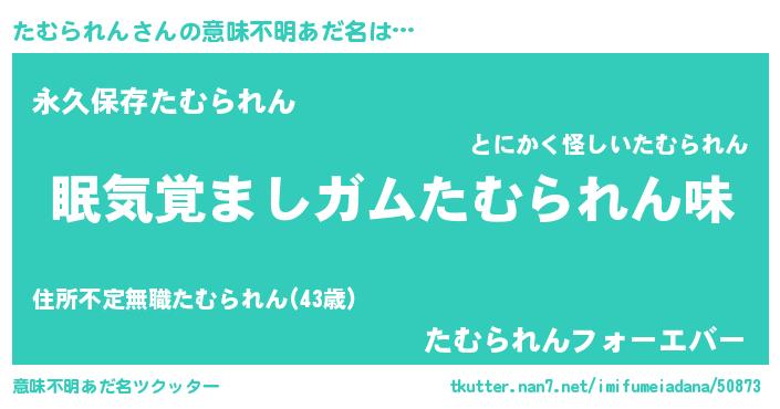 | 女子向けラノベタイトル風あだ名 | 『死神たむられんの再婚』 |