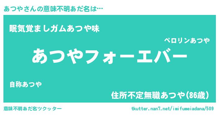 | ファンタジー風あだ名 | 『カークアツラー』『エターナルアツヤー』 |