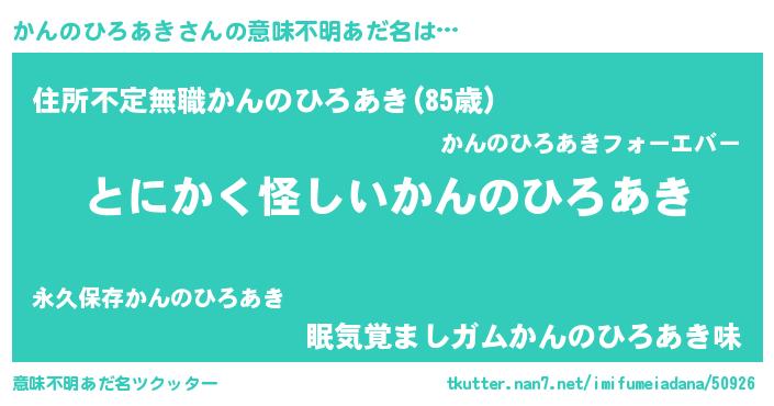 | 伝説のあだ名 | 『覚醒した遊び人かんのひろあき』 |