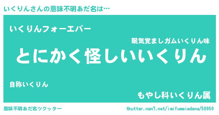 | ヒーロー風カッコイイあだ名 | 『魔戒騎士イク』『ウルトラいくりんマン』 |