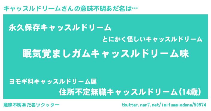 | ヘコむあだ名 | 『キャッスルドリーム(小並感)』『キャ太郎』 |