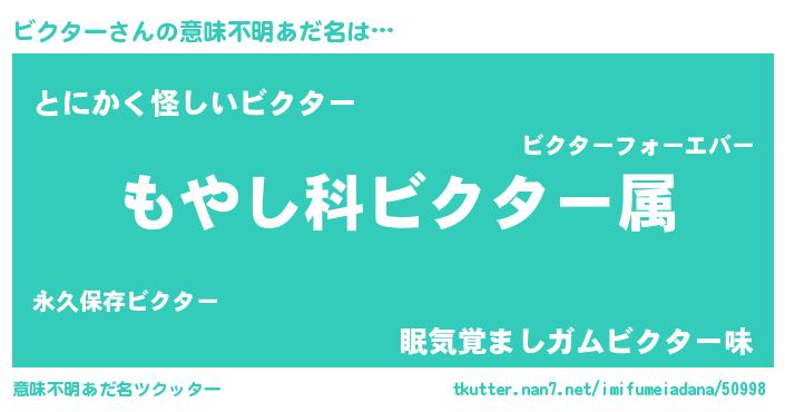 | ヒーロー風カッコイイあだ名 | 『幻影騎士ビク』『正義の使者ビクター』 |
