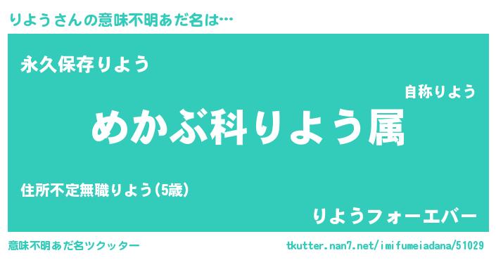 | 男性向けラノベタイトル風あだ名 | 『リヨウスレイヤー』『魔弾の王とりよう』 |