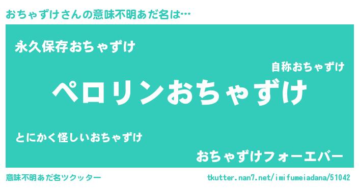 | 胡散臭い通販商品みたいなあだ名 | 『億万長者になれるブレスレット…その名も「おちゃずけ」』 |