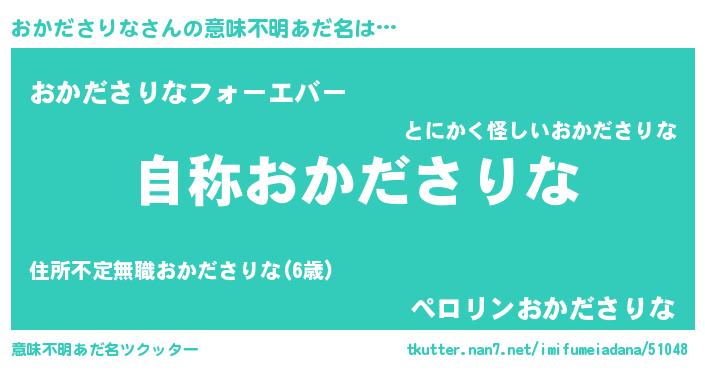 | 欧米人風あだ名 | 『ケンブリッジおかださりな』 |