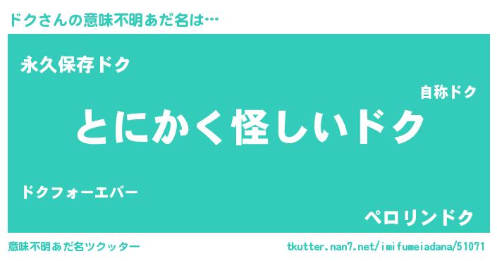| 胡散臭い通販商品みたいなあだ名 | 『信頼と実績のサプリメント…その名も「ドク」』 |