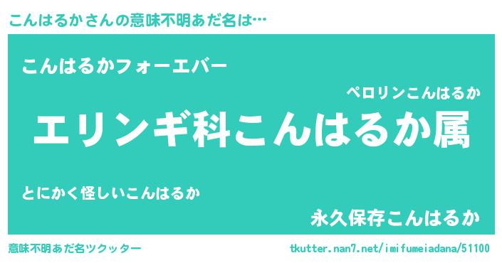| 料理風あだ名 | 『こんはるかごはん』 |