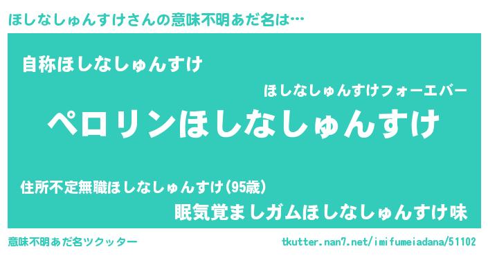 | 男性向けラノベタイトル風あだ名 | 『ほしなしゅんすけの憂鬱』 |