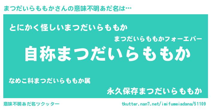 | 女子向けラノベタイトル風あだ名 | 『まつだいらももかストレイドッグス』 |