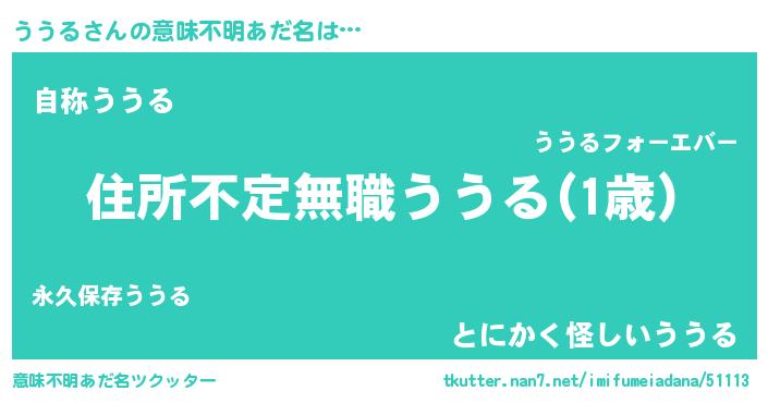 | 男性向けラノベタイトル風あだ名 | 『この素晴らしい世界にううるを!』 |