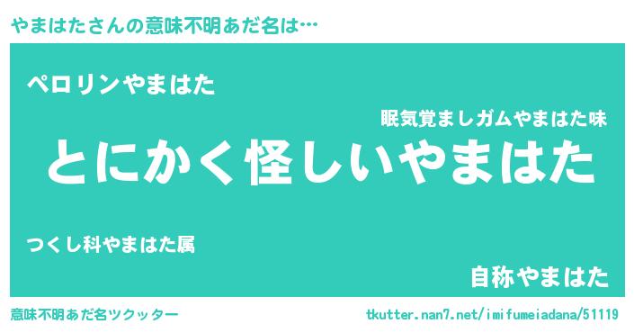 | 男性向けラノベタイトル風あだ名 | 『うちのやまはたが世界を掌握している!』 |