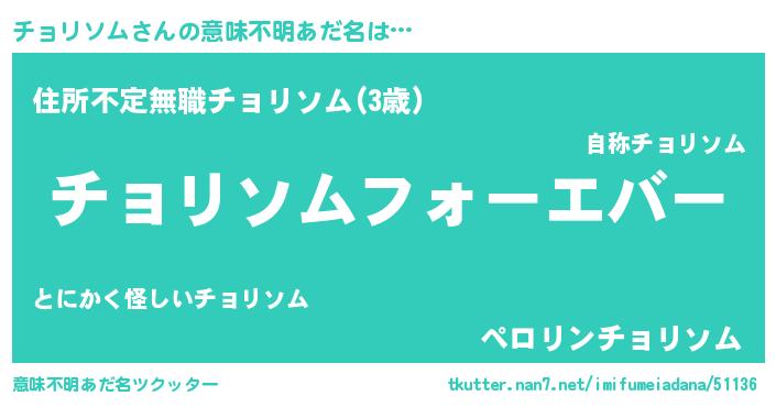 | 欧米人風あだ名 | 『チョリソムクリステル』 |