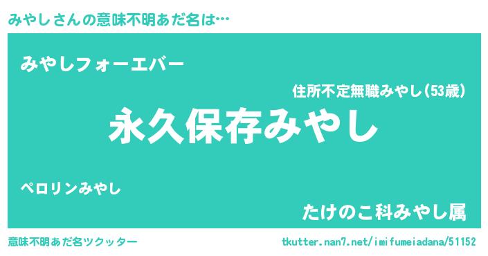 | 男性向けラノベタイトル風あだ名 | 『緋弾のミヤシ』『ミヤシスレイヤー』 |