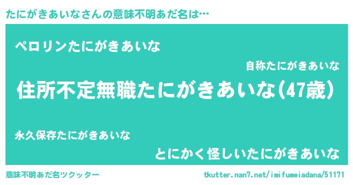 | 料理風あだ名 | 『たにがきあいなのカルパッチョ風』 |