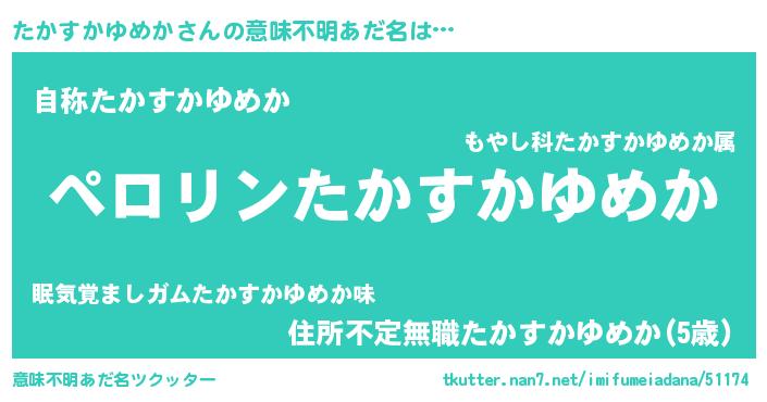 | 胡散臭い通販商品みたいなあだ名 | 『必ず成功する霊験あらたかなお札…その名も「たかすかゆめか」』 |