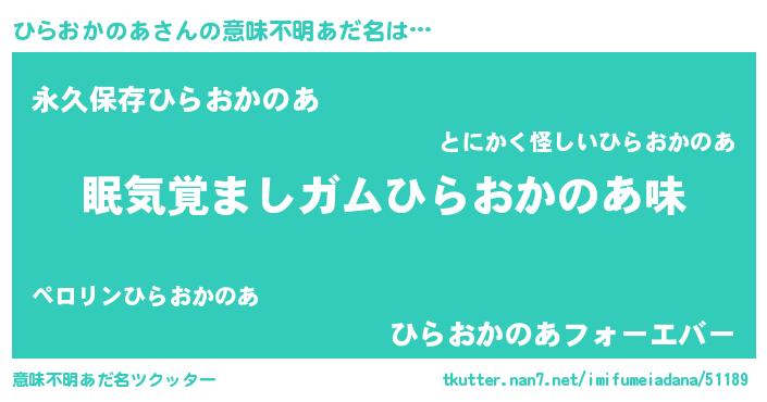 | ヒーロー風カッコイイあだ名 | 『愛の使者ひらおかのあ』『魔戒騎士ヒラ』 |