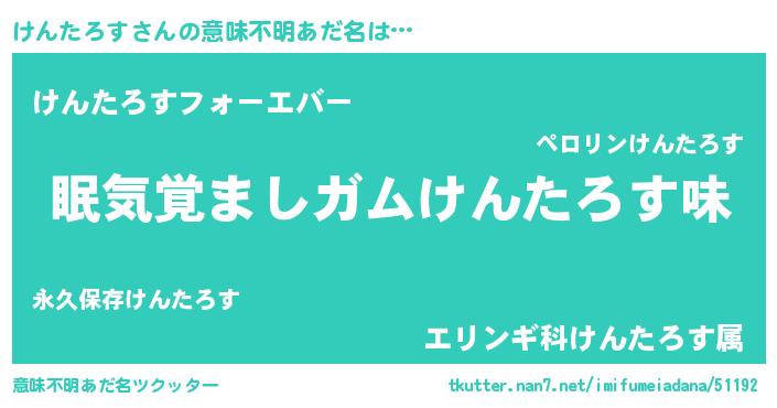 | 男性向けラノベタイトル風あだ名 | 『おまえをオタクにしてやるから、俺をけんたろすにしてくれ! 』 |