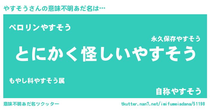 | ヒーロー風カッコイイあだ名 | 『炎刃騎士ヤス』『スーパーヤスソウ』 |
