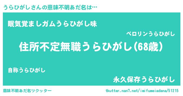| ヒーロー風カッコイイあだ名 | 『仮面ウラダー』『正義の使者うらひがし』 |