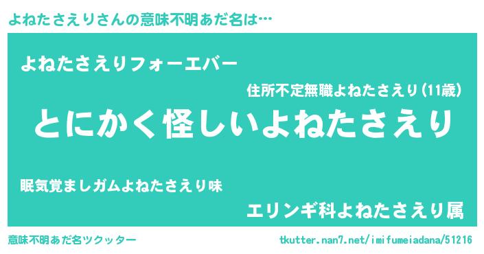 | 料理風あだ名 | 『よねたさえりの豆乳スープ』 |