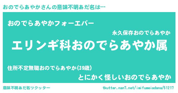 | 肩書あだ名 | 『おのでらあやか上級大将』 |