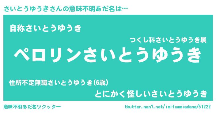 | ヒーロー風カッコイイあだ名 | 『スーパーサイトウユウキ』 |