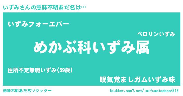 | 男性向けラノベタイトル風あだ名 | 『イズミスレイヤー』『いずみの憂鬱』 |
