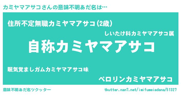 | ヘコむあだ名 | 『カミにゅー』『カミヤマアサコ(小並感)』 |