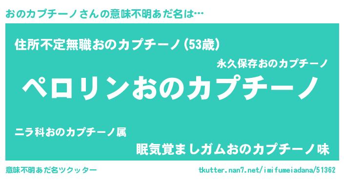 | 胡散臭い通販商品みたいなあだ名 | 『モテモテ間違いなし霊験あらたかなお札…その名も「おのカプチーノ」』 |