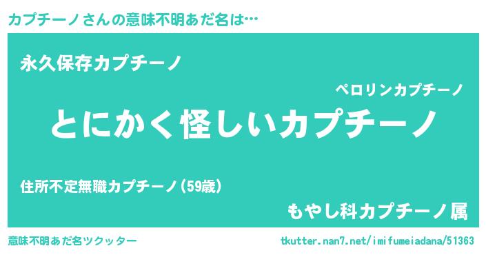 | 女子向けラノベタイトル風あだ名 | 『カプチーノ様がみてる』 |
