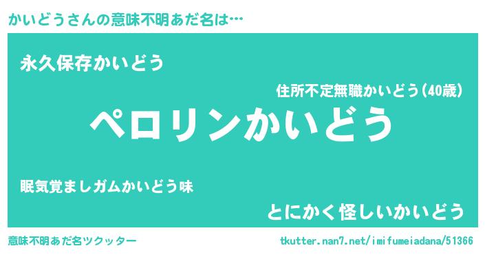 | 胡散臭い通販商品みたいなあだ名 | 『必ず成功する水晶球…その名も「かいどう」』 |
