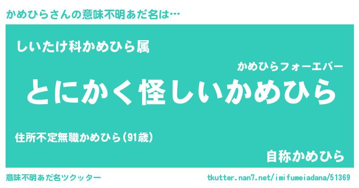 | 欧米人風あだ名 | 『ウサインかめひら』 |