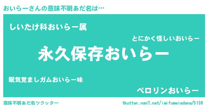 | ヘコむあだ名 | 『おいらー(笑)』『おいふぇ~』 |