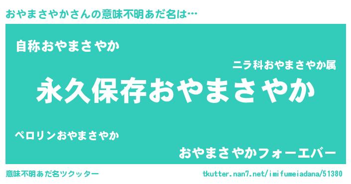 | 欧米人風あだ名 | 『おやまさやか・ステッグマイヤー』 |
