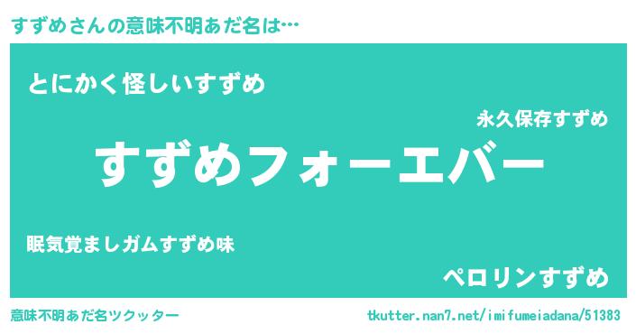 | ファンタジー風あだ名 | 『エターナルスズメー』『スズフェル』 |