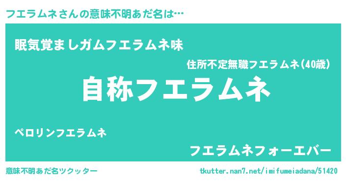 | 男性向けラノベタイトル風あだ名 | 『Re:フエラムネから始める異世界生活』 |